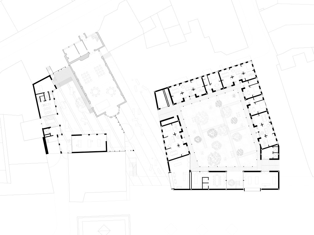 The first floor offers further class rooms along with Admin and Storage spaces, whilst also repurposes the existing walkway to provide a new reactivated walk way to the adjacent service yard studio spaces.
